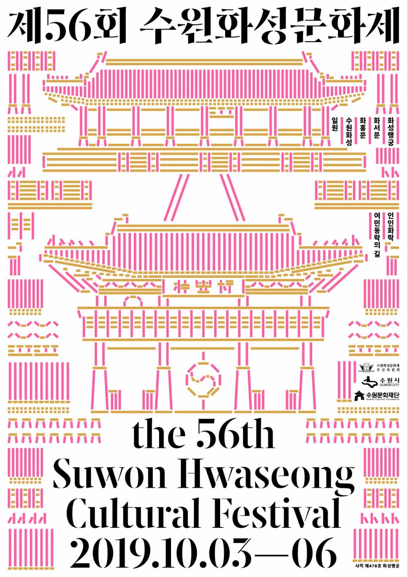 We have produced an illustration and a logo type based on the sculpture features of Hwaseong Haenggung Palace, Northwest Gongsimdon and Hwahhongmun Gate for the 56th Suwon Hwaseong Cultural Festival. Afterwards, we will apply it to various applications of cultural festival.